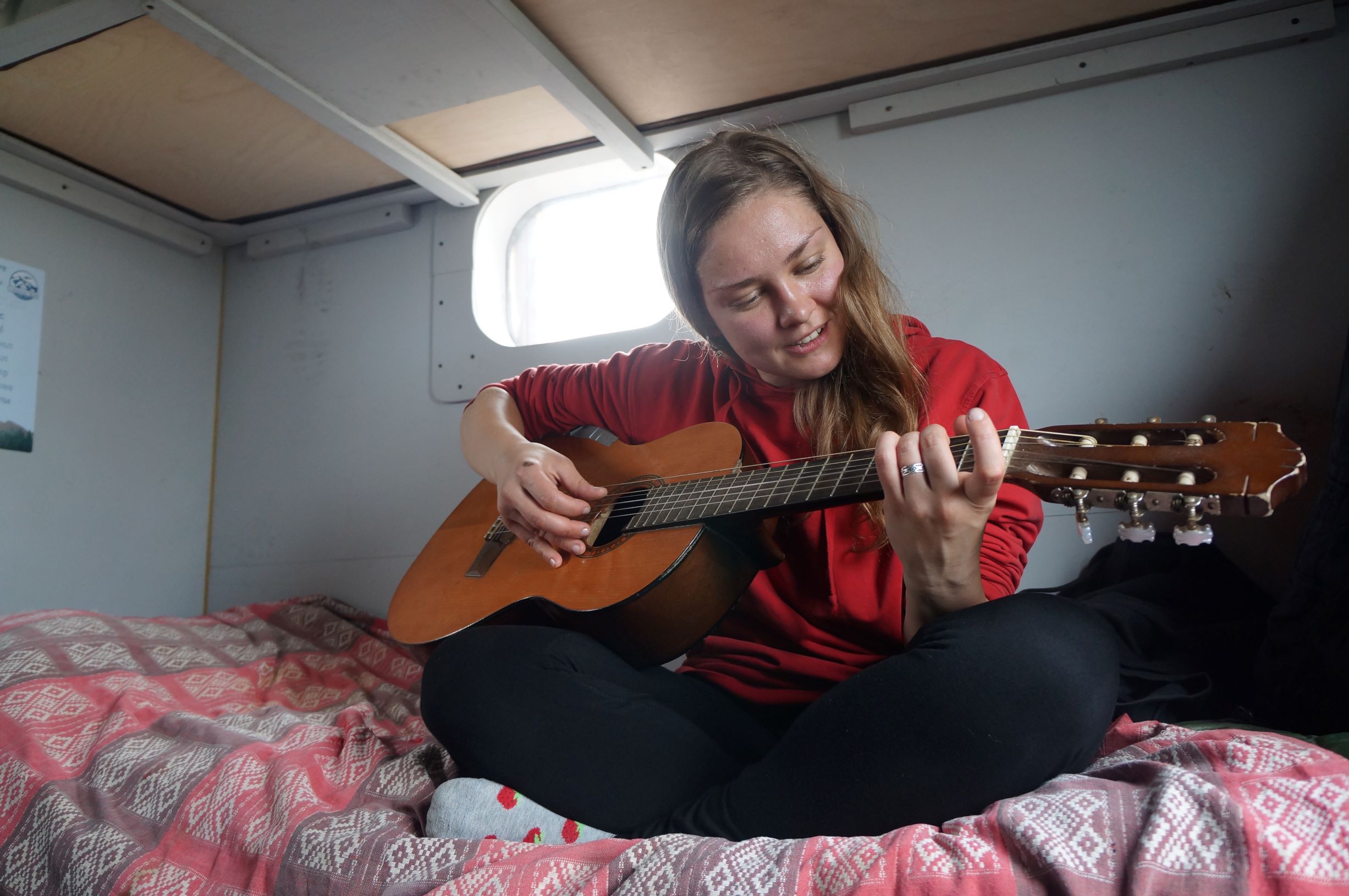 Между тем, хозяин Крузака заявил, что его спутник широко известный в местных кругах Гурич… Удивился, что мы не знаем, кто это… Он начал объяснять нам, что, Сергей Гурич пишет и сам исполняет свои песни. Вот была бы гитара… Мы сказали, что гитара как раз у нас есть, правда в плачевном состоянии…