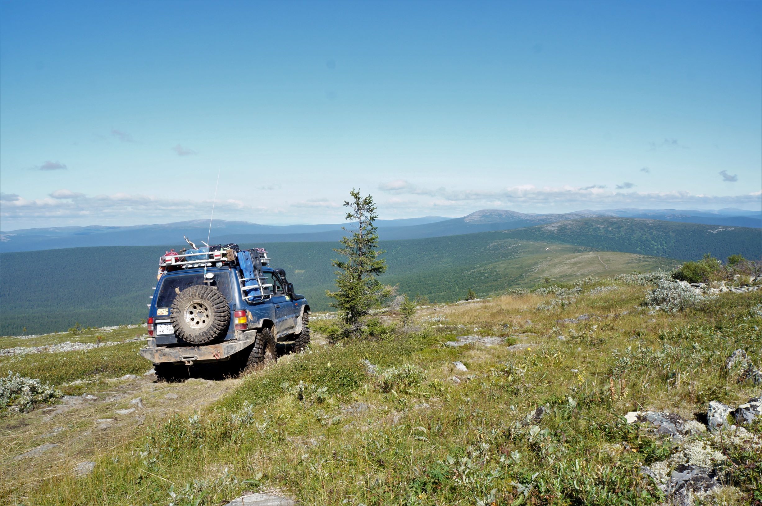 Стоило перемахнуть через гору, как нам встретилась группа из двух Патрулей и Тойоты. Остановились пообщаться. Народ ехал с плато. Доехать то они до него доехали, разрешение на посещение имели, а вот попасть так и не попали – шел сильный дождь и прогулку пришлось отменить. На обратном пути, на курумниках, у еще одной машины из их группы – Сотого Крузака, завернуло кардан и его пришлось бросить. Народ скептически смотрел на Антохин прицеп, уверял, что с ним там вообще не проехать, и вообще лучше туда не соваться – там холодно и плохая дорога… А еще, они видели двух белочек…