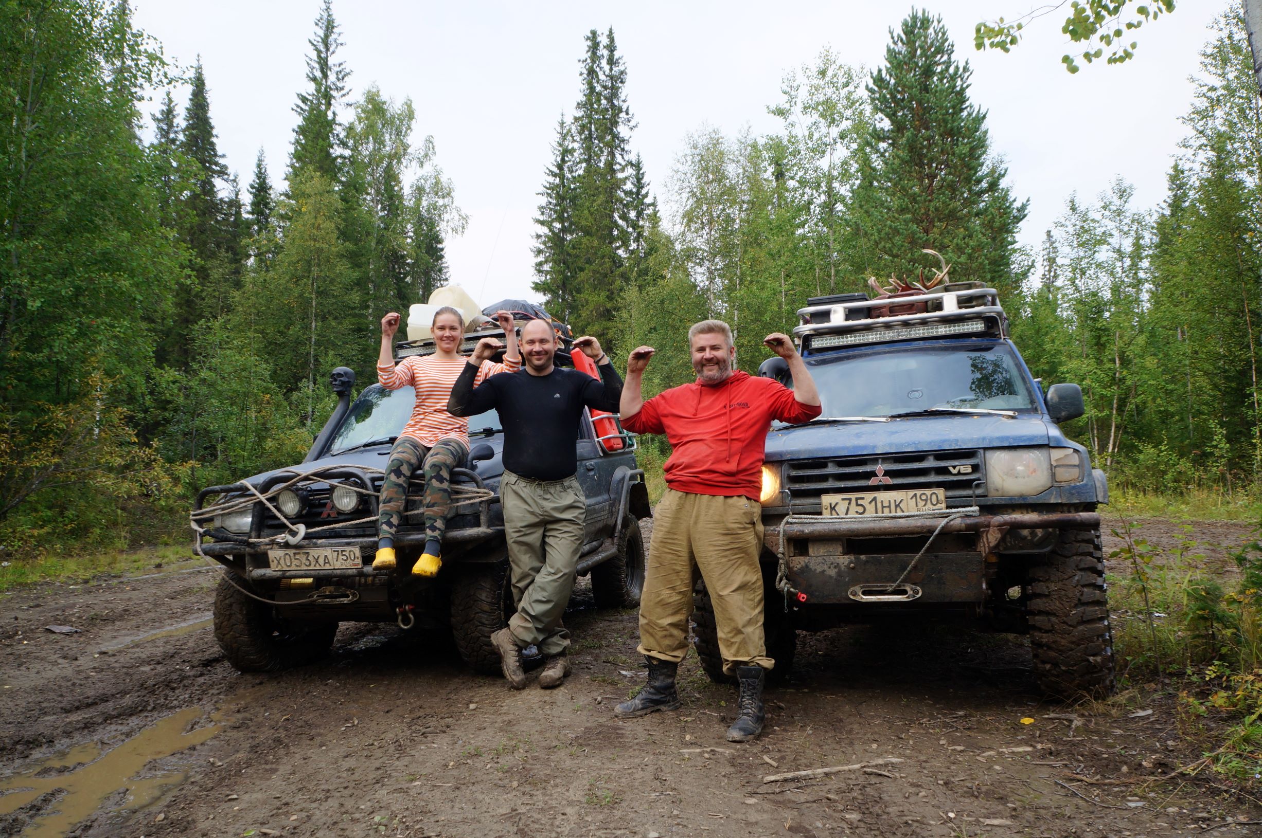 Леха рассказывает историю их возвращения без нас. Шмыга уехала от нас рано утром, шел дождь и когда они отъехали сотню метров от лагеря, то увидели стоящего в тумане на задних лапах медведя – того самого. Потом они успешно прошли перевал Дятлова, спустились вниз и дошли до бродов. Тут оказалось, что реки поднялись так, что самостоятельно пройти броды невозможно. На берегу они повстречали группу уже знакомых Нивоводов, которые тоже были в замешательстве. На их счастье мимо проезжал то ли Урал, то ли еще что-то подобное, он взял всю эту банду на буксир – прямо как бусины нанизались на тросы штуки 4-5 Нив и Шмыга с прицепом. Таким образом прошли оба брода. Еще встретился им поисковый отряд МЧС, который ехал… на поиски нас. Тут мы вспомнили слова Алексея Быкова о том, что нас потеряли…