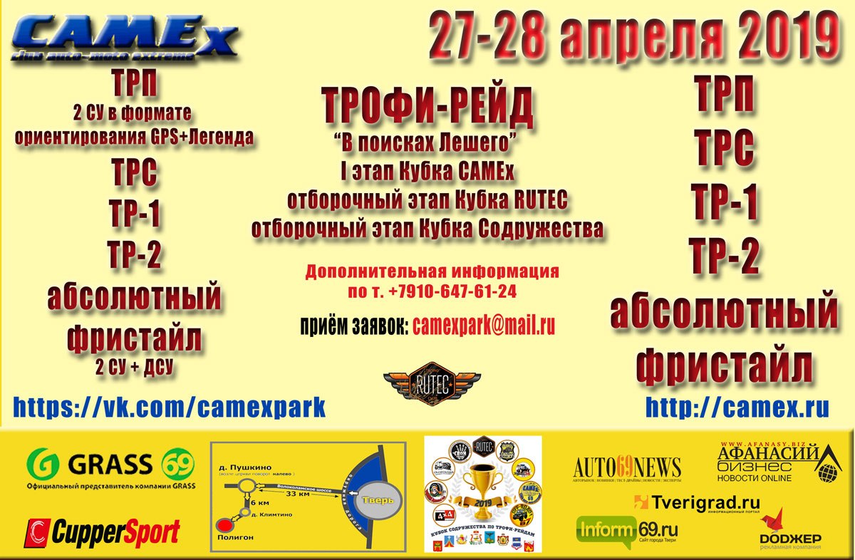 27 апреля 2019 года в Тверской области стартует новый сезон офф-роад соревнований, проводимых клубом автомотоэкстрима CAMEx.