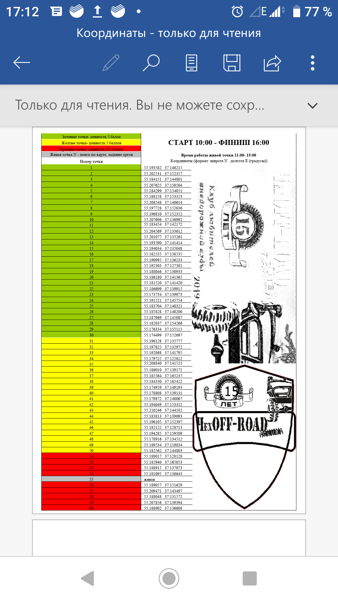 Чуть позже выложат координаты точек.